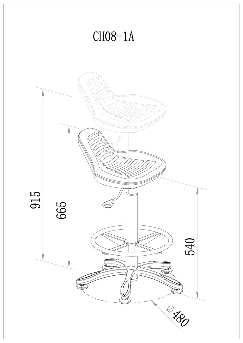 椅脚: Φ480mm / 优质冷轧钢管冲压焊接成型, 表面电镀处理